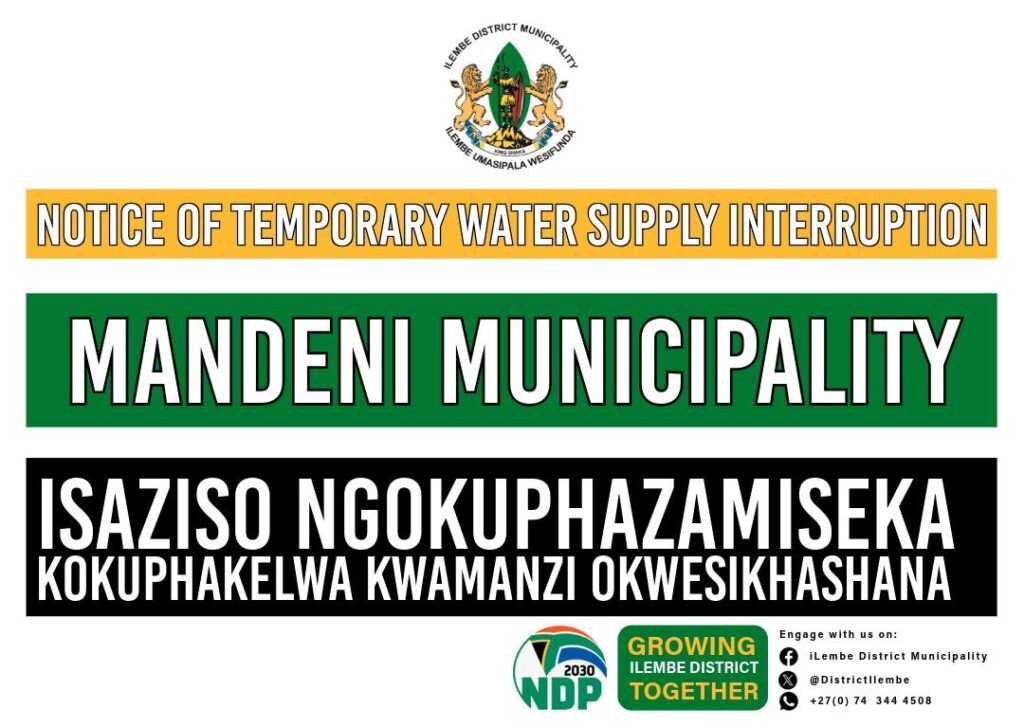 Mandeni residents are advised that the water supply interruption is still ongoing due to damaged pumps at the Sundumbili Water Treatment Works.